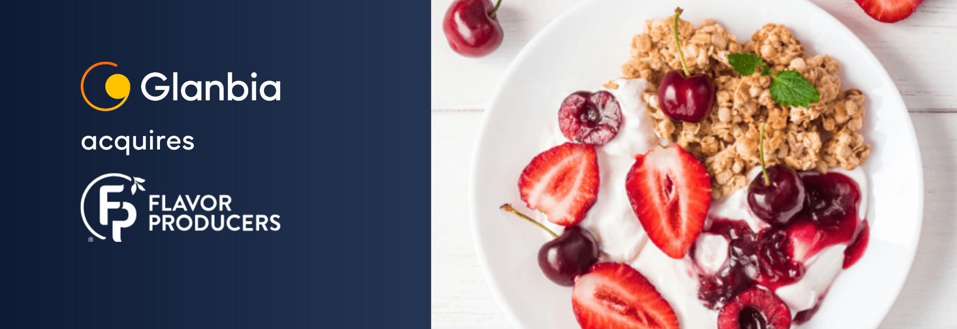Flavour Producers provides flavours and extracts to the food and beverage industries, with a focus on natural and organic ingredients. Glanbia will operate Flavor Producers within its Nutritional Solutions (NS) business.
